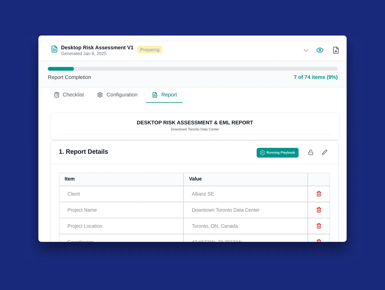 Generate desktop study reports, EMLs (Estimated Maximum Loss), and other standardized formats. Review and edit, or export in multiple formats.